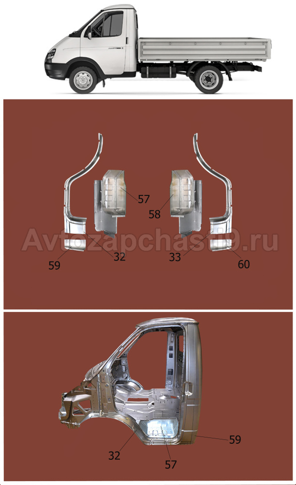 Ремонтный комплект порогов для кабины Газели 3302 из 6 частей